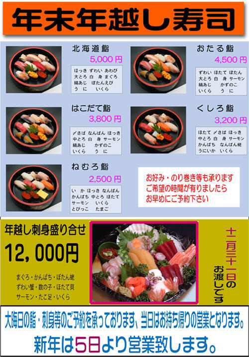 年末 「年越し鮨」 のご案内