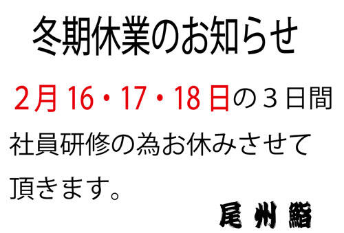 1月13日(火)は社員研修の為お休み
