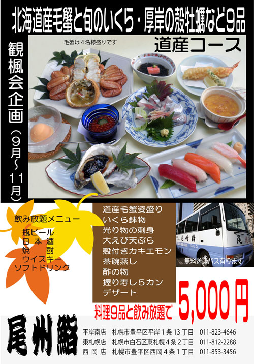 9月~11月限定 観楓会 道産コース