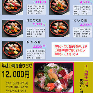 他、お好み、海苔巻き、刺身盛合せ等ございます。お気軽にお問合せ下さい