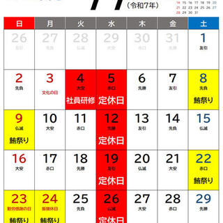 R.7年11月の定休日