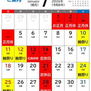 1日~4日までお正月休みになります